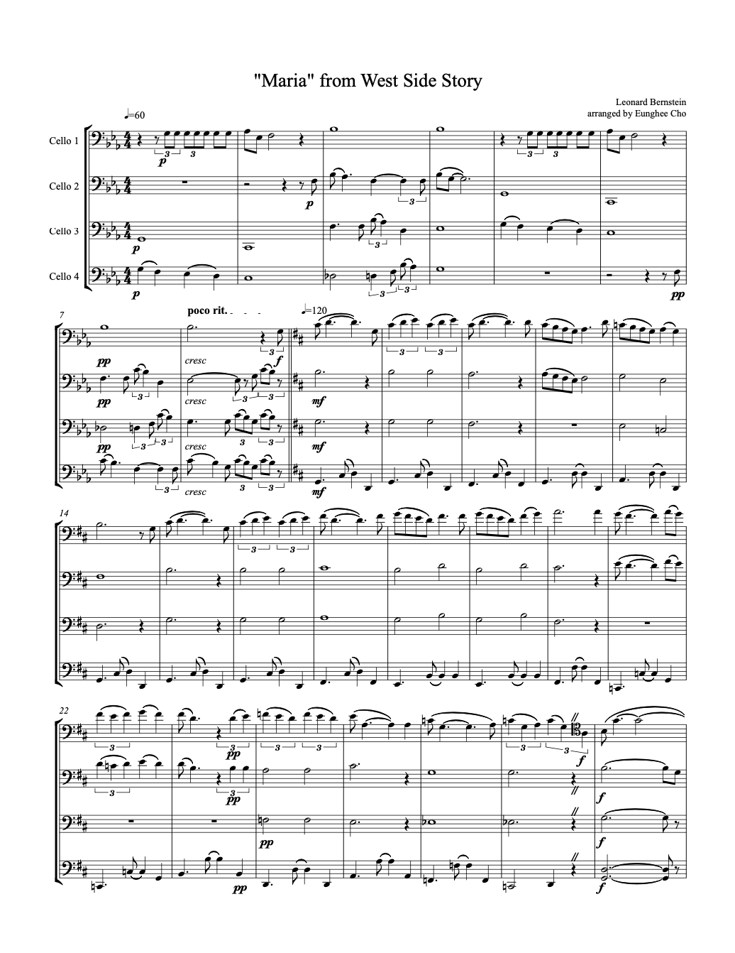 Arranged for 4 cellos